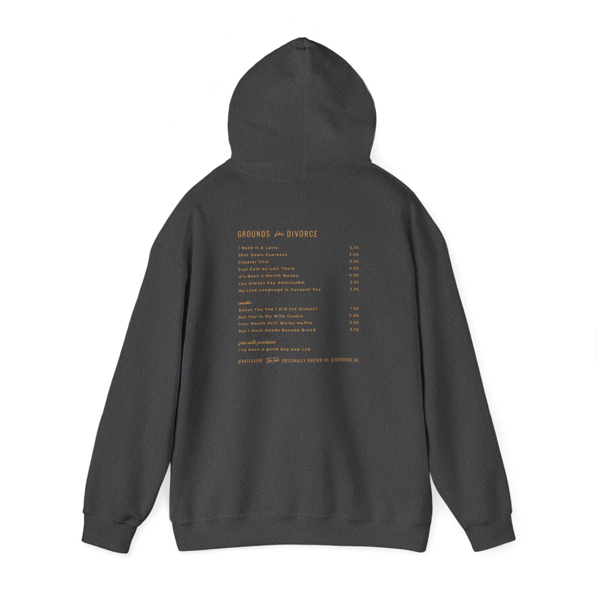 This is a fake coffee shop I made up as a joke in a TikTok video, but for fun I made a hoodie with a menu of coercive phrases from The Playbook.