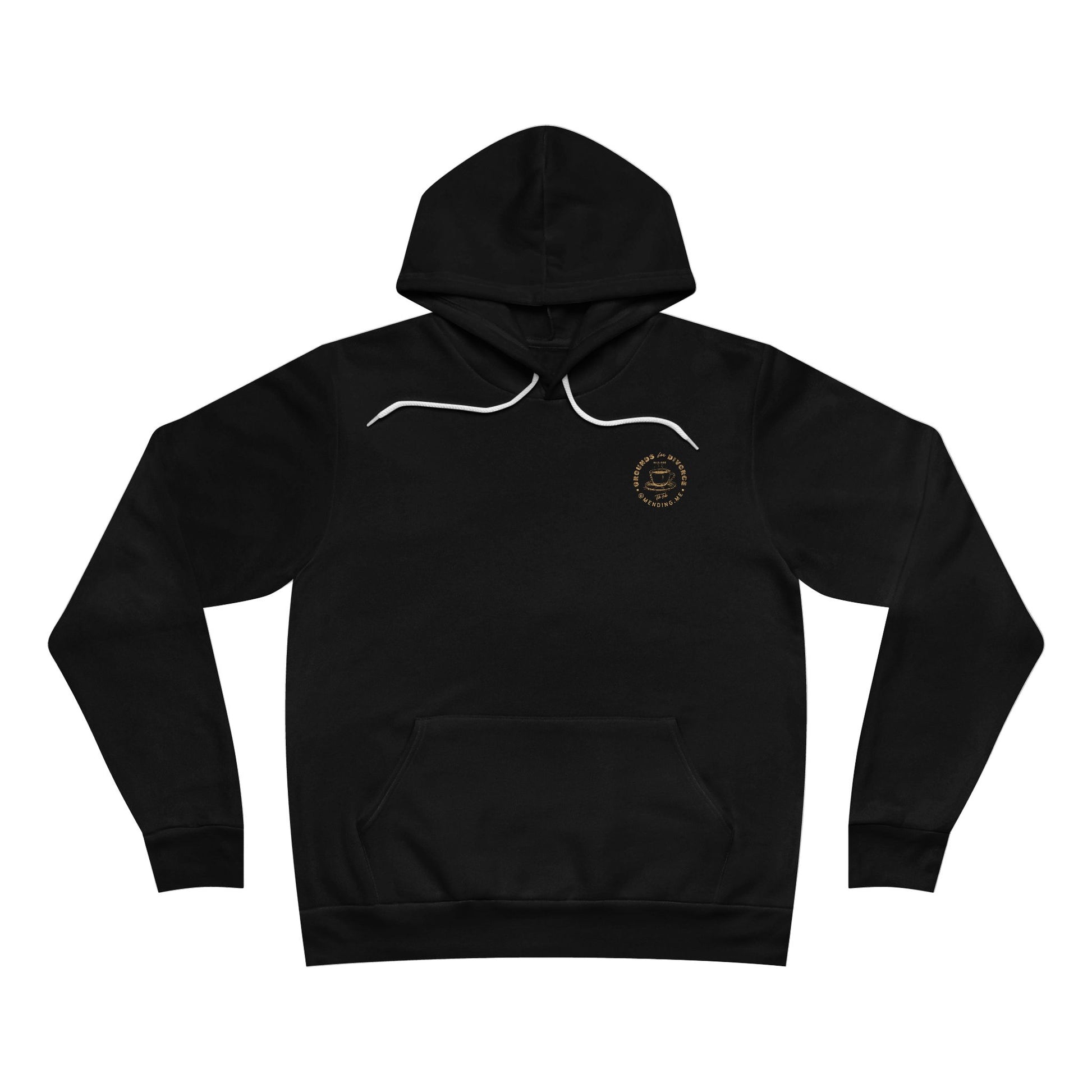 The unisex sponge fleece pullover hoodie is a blend of Airlume cotton and polyester. The percentages vary according to color. A pouch-style pocket spreads across the lower half of the garment’s front. The hood can be tightened with a white drawcord. Both cuffs and waistband have ribbing for extra grip.
